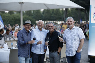 In der Pause der Show gab es eine Erfrischung für Dr. René Pöltl, Oberbürgermeister Schwetzingen, Pascal Seidel, Bürgermeister Oftersheim, Michael Zipf und Jochen Kühnle, Vorstände HG Oftersheim/Schwetzingen. Zum Wohl!