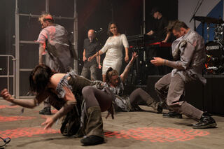Und los geht's: Eines der ersten Lieder war "The Drill". Hier zeigten die vier Tänzer Nikolaj Rohloff, Sabine Ballasch, Katharina Dorochow sowie Misha Tovt gleich eine tolle Choreografie. In der Mitte singt Koffi Missah als Michael Jackson.