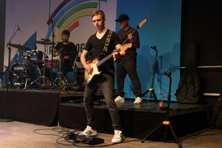 An der Gitarre Jan David (vorne) und am Bass Andy Keller (hinten/Bandleader) dazu an den Drums Johannes Zeiss.