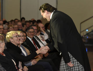 Moderator Steve Eleky geht auf Tuchfühlung mnit dem Publikum.
