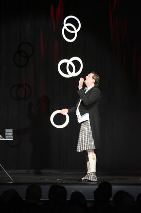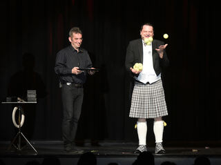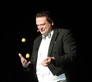 Moderator Steve Eleky verbucht als Zauberer und Jongleur Lachsalven.