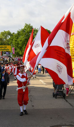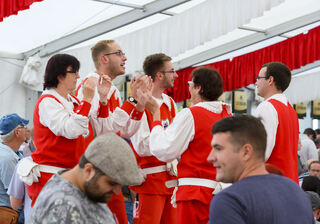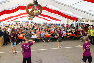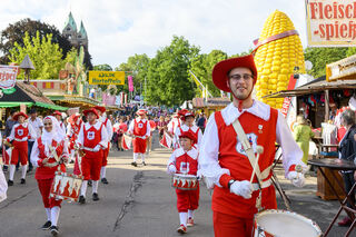 Der Fanfarenzug Rot-Weiß Speyer unterhält im großen Festzelt.
