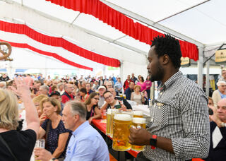 Im großen Festzelt sorgt Markus für Biernachschub.