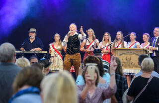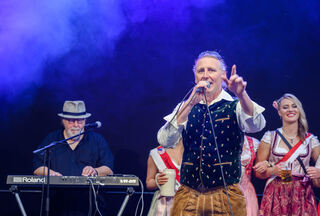 Sänger Rüdiger Kiktenko und Pianist Udo Sailer präsentieren das extra für das Fest komponierte Brezelfest-Lied.
