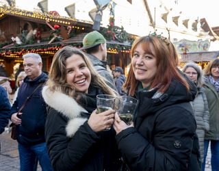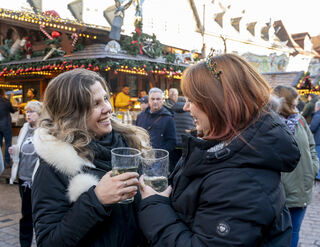 Einige Besucher trinken statt eines Glühweins lieber eine Weinschorle - wie Sabrina Etter und Isabel Fleischer, die Geburtstag hat.