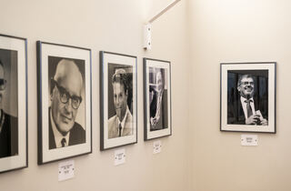 Die letzten vier Oberbürgermeister Speyers in der Galerie: Dr. Paulus Skopp (v. l.), Dr. Christian Roßkopf, Werner Schineller und Hansjörg Eger.