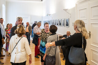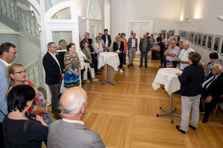 Freunde und Wegbegleiter sind ins Foyer des Historischen Ratssaals gekommen.