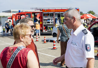 Der stellvertretende Stadtfeuerwehrinspektor Christian Kölsch gibt Besuchern gerne Auskunft.