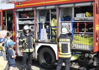 Die Ausrüstung und die Gerätewagen werden von Groß und Klein bestaunt.