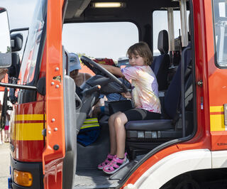 Gerne "fährt" Amelie mal das große Feuerwehrauto.
