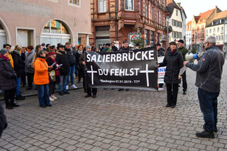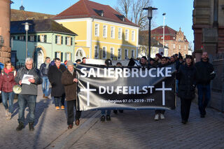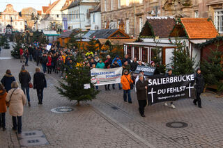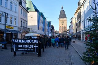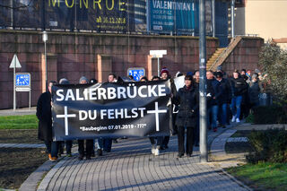 Was zwischen Altpörtel und Dom aussieht wie ein Trauerzug ist eine Demonstration, ein Protest gegen das Baustellenchaos in der Region, vor allem gegen die geplante Verlängerung der Bauzeit der Salierbrücke.