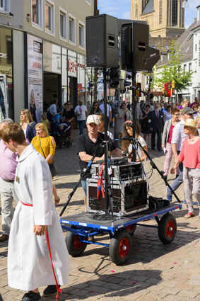 Die liturgischen Texte werden das erste Mal mithilfe einer mobilen Lautsprecheranlage verkündet.