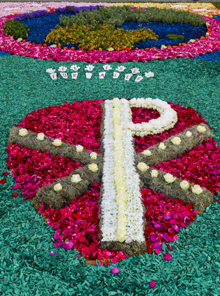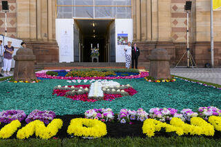 Vor dem Dom ist wieder ein beeindruckender Blütenteppich ausgelegt.