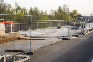 An der Vorlandbrücke auf der badischen Seite laufen Betonarbeiten.