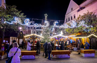 Weihnachtliche Kulisse: das beleuchtete Altpörtel am Postplatz.