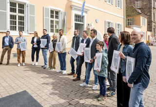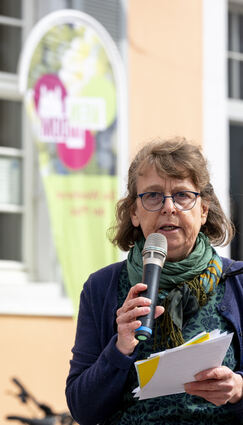 Zur Eröffnung am Geschirrplätzel erschienen zahlreiche geladene Gäste. Die städtische Beigeordnete Irmgard Münch-Weinmann begrüßt für die Stadt.