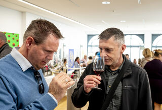Michael Mersinger und Rainer Channe kommen aus Kaiserslautern gereist und genießen Wein und die Vielfalt.
