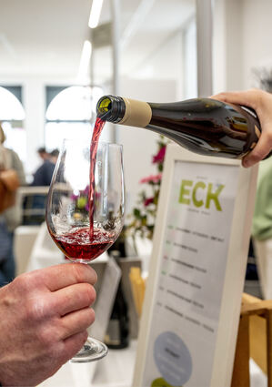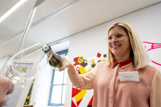 Gerade schenkt Jasmin Eck ein Glas ein.