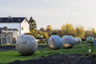 04.11.20 Die Erschliessung des Geländes der ehemaligen Gärtnerei Decker im Stadtteil Neuland in Speyer macht eher keine bzw. nur ganz kleine Fortschritte, da es Rechtsprobleme gibt, die das erstellen der Katasterpläne erschweren und zusätzlich Einsprüche die Erschliessung verhindern. Mittlerweile wurden aber beinahe alle Gewächshäuser abgerissen und die an die Murmeln eines Murmelspiels erinnernden riesigen Wassertanks ausgegraben