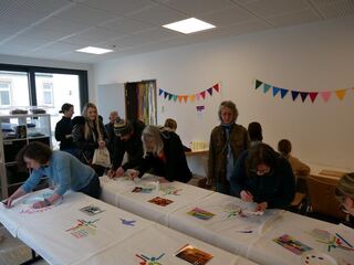 Im Obergeschoss können die Besucher Altartücher und Osterkerzen gestalten.