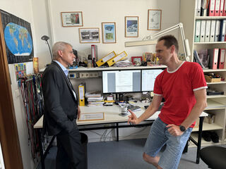 Dominik Stolte (Hintergrund) erklärt seine Arbeit.