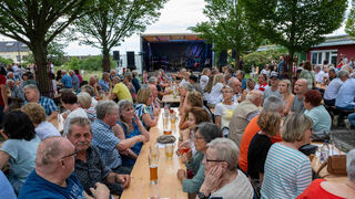 Einige Hundert Besucher aller Altersgruppen kommen auf das Gelände des Alten Bahnhofs und freuen sich auf einen schönen Abend in geselliger Runde, bei sehr guter Musik und bei perfektem Veranstaltungswetter.