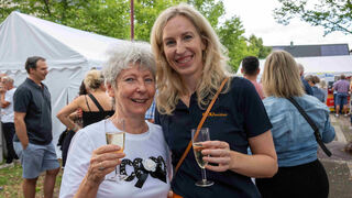 Renate Brück (links) und Madelaine Kühne aus Neulußheim starten in den Abend mit einem Gläschen Sekt.