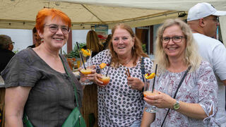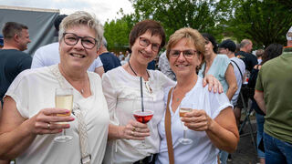 Auch die drei Damen treffen sich zu einem Gläschen bei toller Musik und bester Stimmung - Annette Buchmüller aus Neulußheim (Bildmitte) mit ihren Freundinnen.