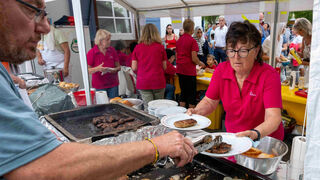 Am Verpflegungstand der Neulußheimer Landfrauen helfen auch Männer mit.