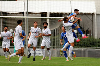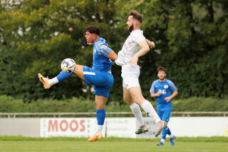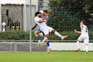 Der Luftzweikampf zwischen dem Brühler Miloat Berisha und Burak Cavdaro kann sich sehen lassen.