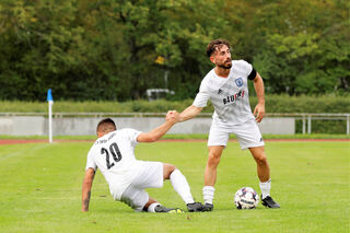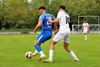 Marco Seibert (l.) vom SV 98 Schwetzingen und Anes Klicic vom FV 1918 Brühl im Zweikampf.