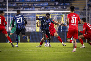 Thijmen Nijhuis am Ball vor Yasin Zor.