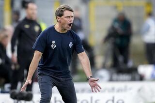 Luc Holtz (Trainer, Cheftrainer, SVWM) gibt Anweisungen während des Spiels.