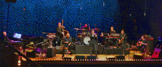 Große Bühne (v.l.): Olaf Polzien (Klavier), Christian von Kaphengst (Bass), Frank McComb (Gesang), David Haynes (Schlagzeug), Till Brönner (Trompete) und Jan Miserre (Keyboard).