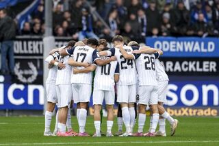 Spieler vom SV Waldhof Mannheim schwören sich mit einem Mannschaftskreis vor dem Anpfiff ein.
