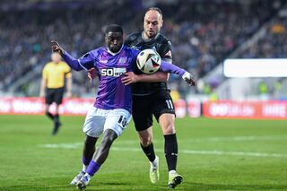 Braydon Manu (Osnabrueck) im Zweikampf gegen Rico Benatelli (Mannheim).
