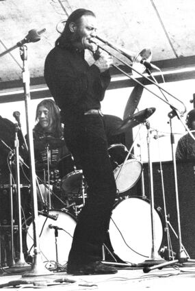 Einer der Stars, die beim Vorläufer von Rock am Ring auftraten, war der Jazzer Albert Mangelsdorff. Am Schlagzeug: Peter Giger.