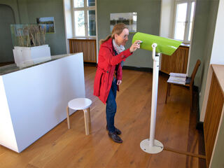 Dr. Antje Gillich beim Blick durchs Teleskop auf die Wagbachniederung.
