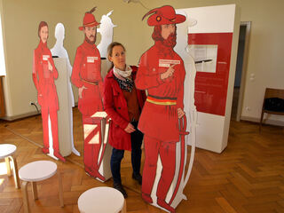 Die Revolutionäre Amand Goegg, Gustav Struve und Friedrich Hecker aus Pappe mit Antje Dr. Gillich.
