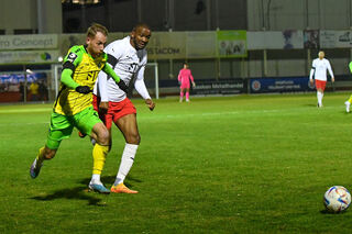 Laufduell zwischen Waldhofs Marc Schnatterer (l.) und Max Kougang vom VfR Mannheim.
