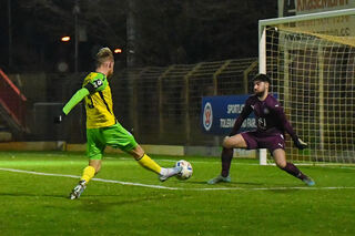 Waldhofs Marc Schnatterer (l.) läuft alleine auf VfR-Keeper Ugur Can Tayar zu.