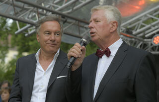 Intendant Nico Hofmann (links) und OB Michel Kissel begrüßen die Gäste...