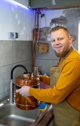 In seiner 12-Liter-Destille produziert er hochwertige Gins mit verschiedenen Aromen.