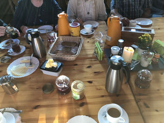 Nach dem Gottesdient sitzen alle gemeinsam am Frühstückstisch.