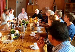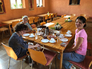 Nachdem die Frauen die Wallfahrtskirche gepflegt haben, bekommen sie von Angelika Schramm ein Frühstück zubereitet.