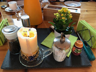 Blumen und Kerzen dürfen nicht fehlen. Fast jeder Tisch ist damit geschmückt.