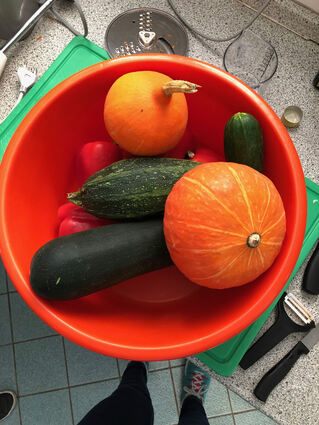 Kürbis, Zuccini und Paprika: Alles frisch vom Gemüseliferanten.