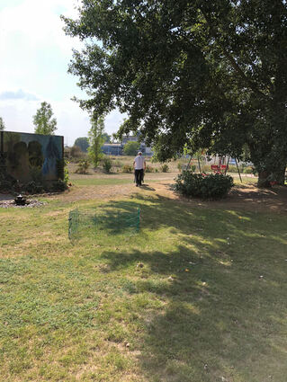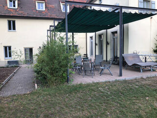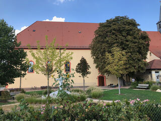 Ein Teil der Klosteranlage. Wenn Kinder da sind, kommen die Hasen Clara und Peter in das Freigehege.