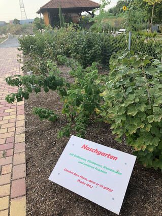 Im Frühling und Sommer gibt es im Naschgarten Erdbeeren, Himbeeren und Weintrauben.