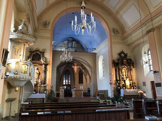 Der Blick von der Bischofsempore in die Wallfahrtskirche.